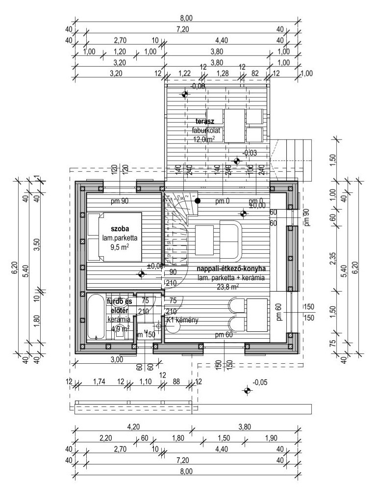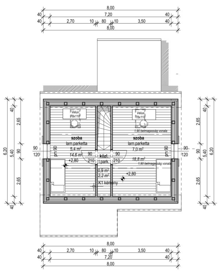 Klasszikusabb formavilágot kedvelőknek, akik számára fontos az egybefüggő nagy nappali + étkező + konyha tér, és a három szoba praktikus kialakítása.