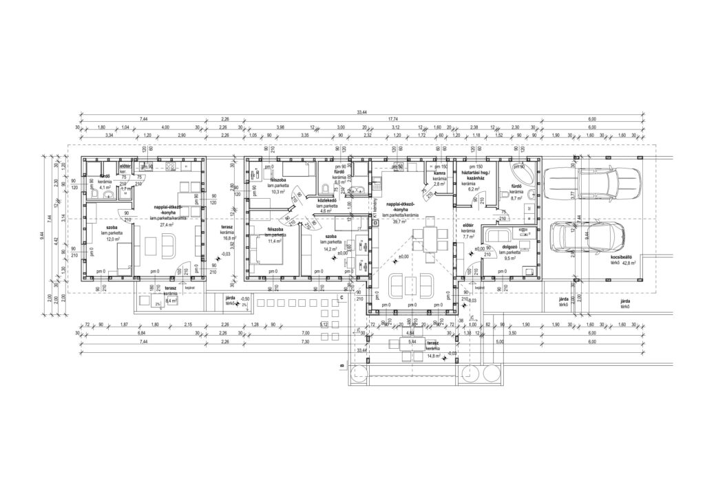 Kinek ajánljuk? Többgenerációs családoknak, ahol fontos, hogy a nagyszülők közelben legyenek. Azoknak, akiknek sok gyerekük van, otthoni munkavégzésre is szükségük van, és nagy közösségi térre, fedett teraszra vágynak. Divatos, modern, elegáns megoldás.